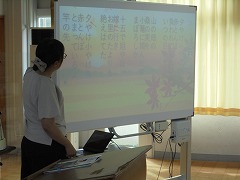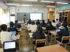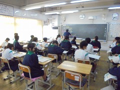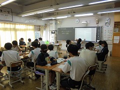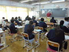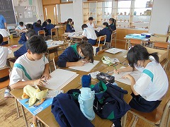 技術科の授業では、情報教育としてプログラミングの導入的な授業展開を見学しました。教科担任が指示した内容を代表生徒が黒板に描いていくのですが、6名それぞれが違った絵を完成させました。実際には「猫」を書くように指示したのですが、これがプログラミングの基本構造なのだと腑に落ちる展開内容でした。コンピューターが当たり前のようにありますが、プログラミングの大切なことを学ぶ機会となりました。また、音楽科では、童謡「赤とんぼ」の歌詞を理解し歌う内容でした。教科担任が、歌詞の文節一つ一つを説明してくれましたが、歌詞に込められた内容を理解し、歌の情景を浮かべながら歌うことで、より歌の深みを感じることができました。やはり、学ぶことは大切です。