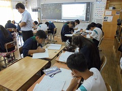 3年生は、夏休み中の学習の成果と今後の進路希望を確認するため、実力テストを受けました。1・2年生は、夏休み前の学習内容や夏休み中の家庭学習の内容を振り返り、気持ちを切り替えて、良い雰囲気で授業に参加していました。