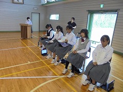 体育祭翌日ということもあり、生徒は疲れているかと思いましたが、授業への切り替えをしっかりと行い、学習に取り組む姿がありました。また、体育祭後の学校行事では、生徒会役員選挙や平和教育実践を行います。更には、合唱コンクールに向けて始動しました。