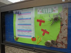 11月に入りました。昇降口外掲示板には11月らしい秋をテーマにした掲示物が創作部生徒によって制作され、掲示されていました。また、3年生担任の先生が季節に合わせて「暖簾」を換えていただき、季節を感じるように展示しています。3年生は、後期中間テストを受験していました。徐々にではありますが、中学校卒業後の進路決定を進めていかなくてはなりません。体調管理に努めて頑張ってほしいと思います。