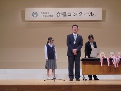 合唱コンクール2として、写真を掲載致します。本当に素晴らしい合唱コンクールでした。どのクラスも練習してきた成果を十分に発表することができました。賞も大切ですが、何事にも代えがたい合唱活動を通して学んだ多くのことが宝物となったはずです。合唱活動の灯を絶やさず、これからも一人一人の素晴らしい歌声を伸ばしてほしいと思います。また、保護者の皆様方におかれましては、早朝よりご参観いただきまして、誠にありがとうございました。