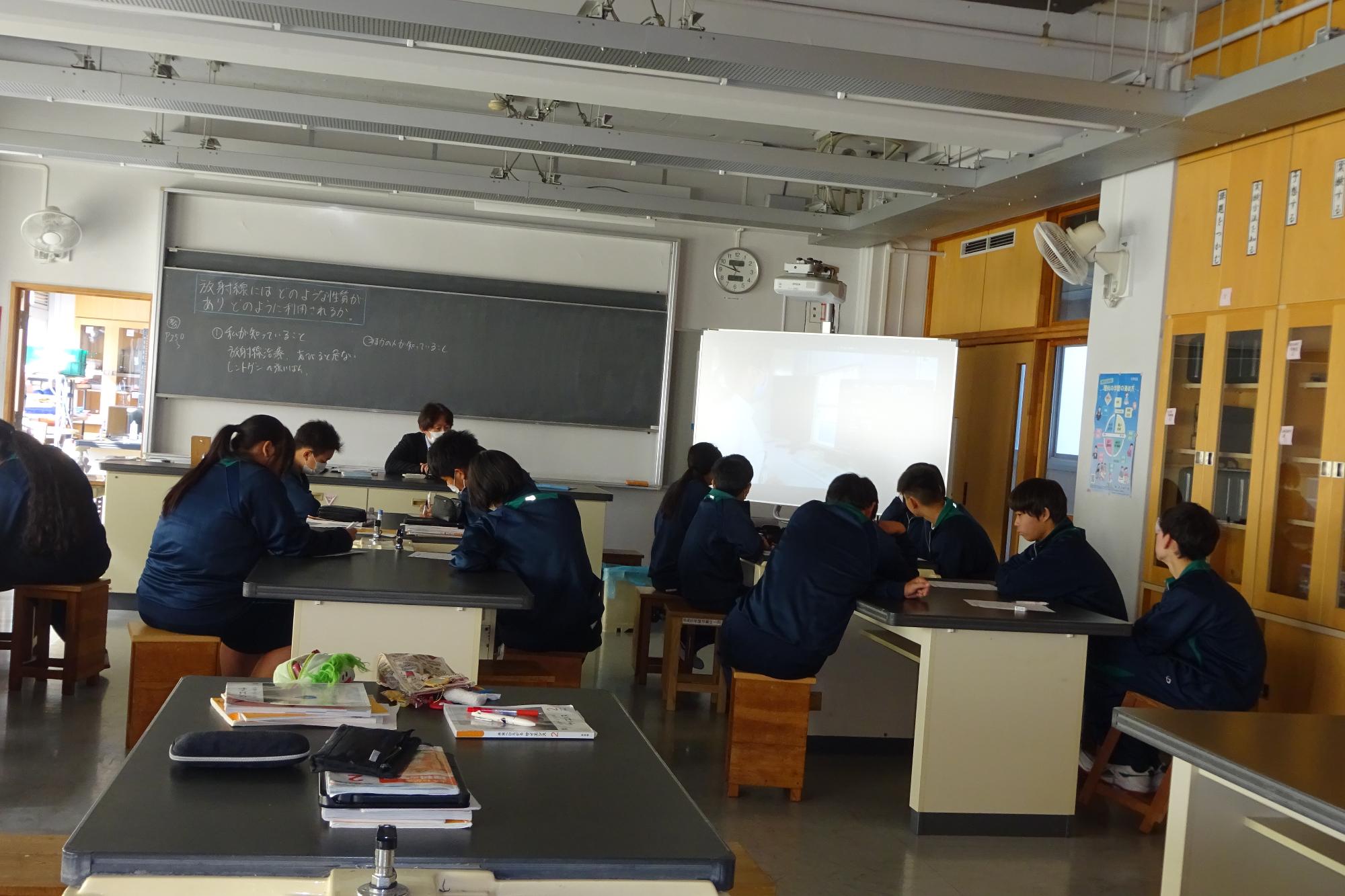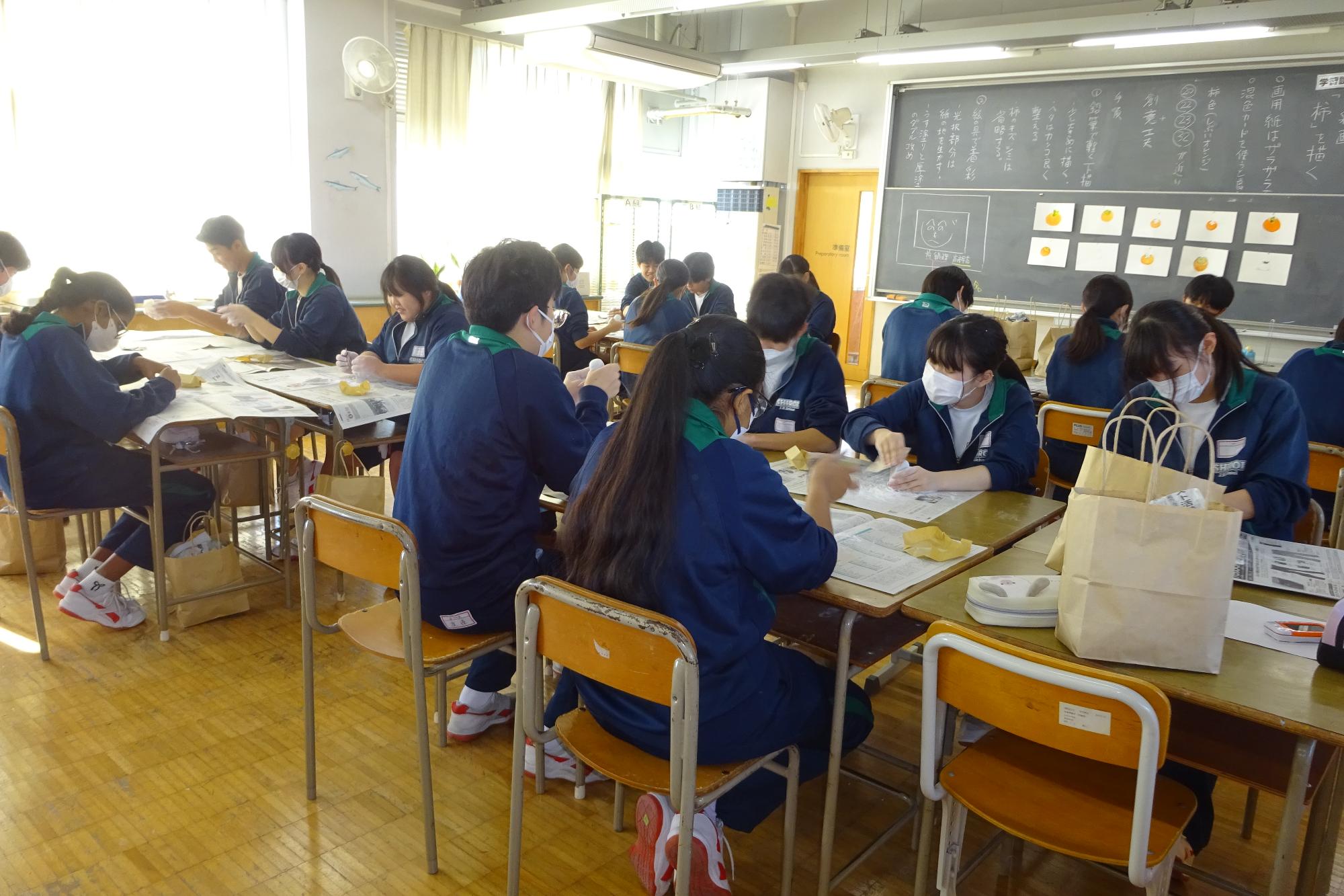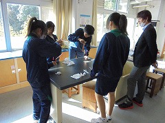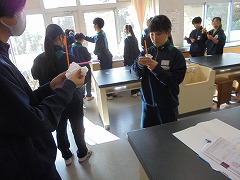 3年生は後期中間テスト2日目の受験でした。朝の登校時では、「最後なので頑張ります」と気合いの入った声を発してくれました。真剣に受験する姿は、入試を思わせる様子でした。2学年は、理科の実験や美術の作品作りに取り組んでいました。