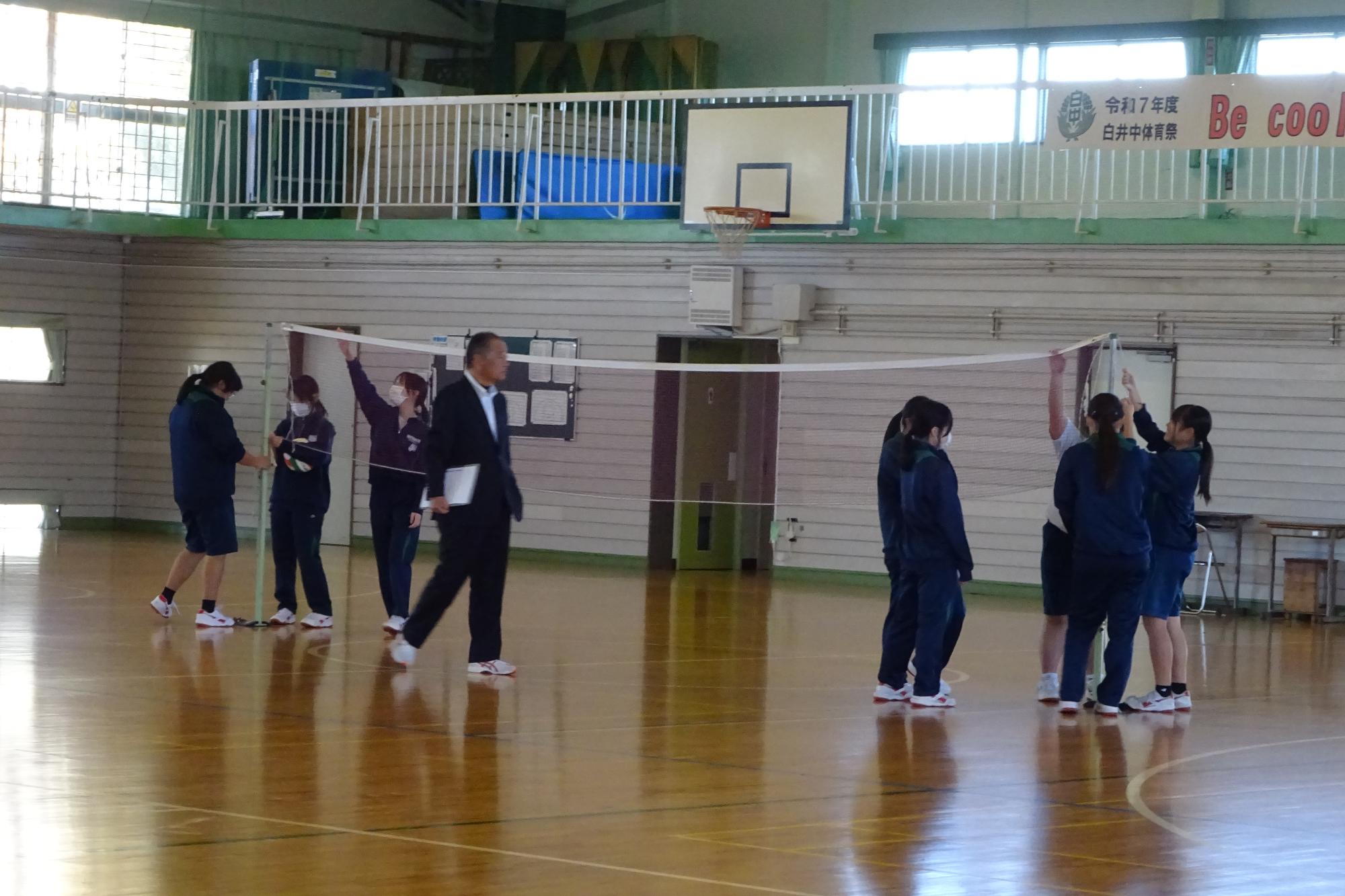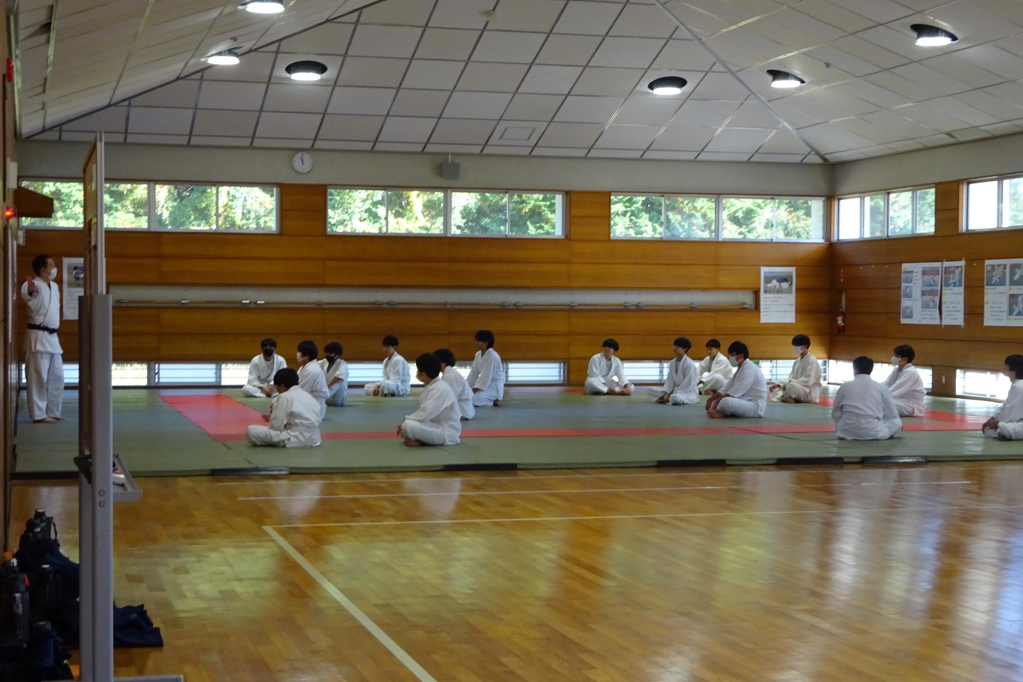 白井市教育委員会より学校支援アドバイザーを招聘し、保健体育科の授業を参観後、よりよい指導方法についてご助言をいただきました。ご参観いただいたのは、「武道『柔道』」と「球技「バレーボール」」の授業です。