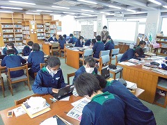 今日で、今年最後の授業が終了しました。どの学年もどのクラスも最後まで学びに逃げず、取り組む姿がありました。2年生では、保健学習において「救急処置」の学習でした。本校にある「スクーマン」という心肺蘇生法を学ぶ教材を利用し、グループで傷病者へ心肺蘇生を施し、さらに、AED機材模型にて設置の仕方や操作方法を学び、いざというときの「命を救う」技法を学びました。とても真剣に取り組む姿がありました。3年生では、新聞記事を自己選択し、自らの学びを広げ深る学習を行ってました。1年間、各教科にて多くのことを学びましたが、1月から3月までが短いので、この冬休みを利用して今までの復習を十分に行って欲しいです。