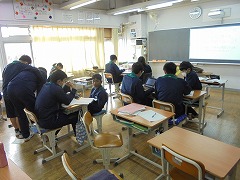 2学年は、職場体験学習のまとめとして発表資料を作成していました。先月、参加した職場での仕事内容や仕事で学んだ大切なことなどを振り返りながら、これからの自分の生き方に触れて考える姿が印象的でした。1学年は、ピア・サポートを実践していました。人との関わり方等を学ぶにはとても大切な学習内容です。多くの意見が八票差照れいました。今日から、本格的な寒さとなります。インフルエンザも流行していますので、残り2週間気をつけながら過ごしてほしいと願います。