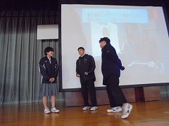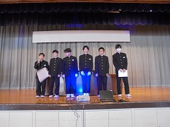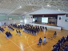 生徒集会&全校集会が行われました。生徒集会では、後期から新役員の紹介及び取り組みの報告を行いました。まずはじめに、1学年総合学習の成果を発表しました。福祉教育「認知症について」を演技を交えながら説明してくれました。次に、各学年代表・部活動の部長・各委員会委員長・生徒会役員がしっかりと発表を行いました。話し方や内容も、素晴らしい発表内容でした。その後、表彰関係となりましたが、各部活動での活躍や文化的な活動における入選・金賞など多種に及び、多くの生徒が表彰を受けました。おめでとうございます。その後、全校集会となりましたが、はじめに校長先生から、前期後半&後期前半の振り返りや学校生活アンケートによる成果と課題について説明を受けました。白井中の課題は学力向上となりますが、今回、2005年に放送されたドラマ「ドラゴン桜」の主人公が語った「勉強とは生きることだ」「生きるために勉強は必要」など、学習することの意義をお話しくださいました。集会後は、各学年毎のまとめとなりますが、1学年では、1名の転校生のお別れ会を行いました。慣れ親しんだ学び舎や仲間とのお別れに涙があふれました。次の学校でも白井中で学んだことを生かして頑張って欲しいと思います。3年生は、進路に向けて私立入試出願等について進路指導主任から話がありました。明日から14日間の冬休みとなりますが、事故や怪我なく、有意義に時間を過ごして欲しいと思います。