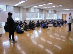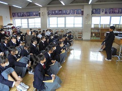 北風が強く、朝から乾燥した寒い日となりましたが、各学年寒さに負けず、持久走に取り組んでいました。お互いに声を掛け合い、励まし合いながら走る姿がありました。持久走を行うと、走った後の達成感や爽快感、充実感を味わえます。そのためには、苦しいときも諦めず継続する事で感じられます。残り少ない回数となりますが頑張ってほしいと思います。また、2学年は、B組が職場体験学習のまとめを発表しました。学年主任からは、この経験を学校生活に生かして欲しいと最後に話されました。