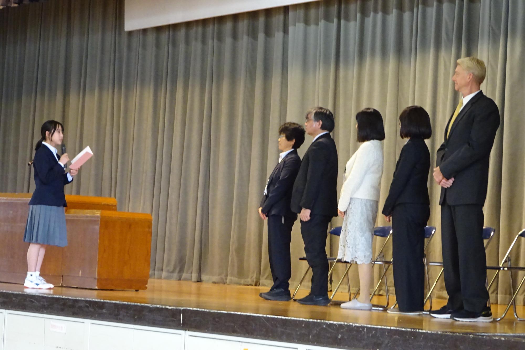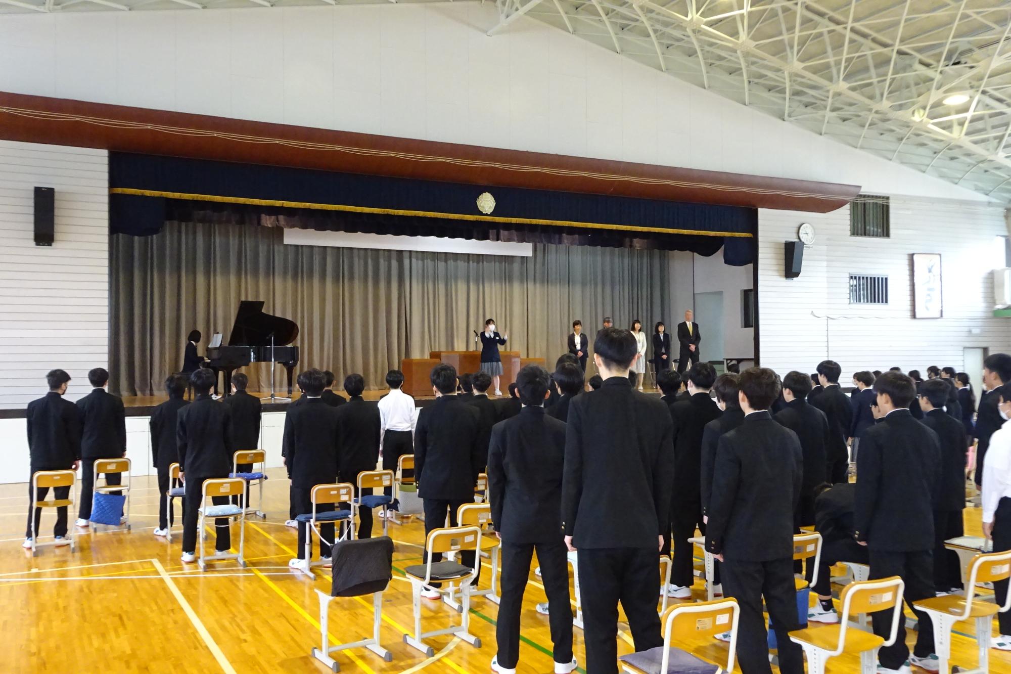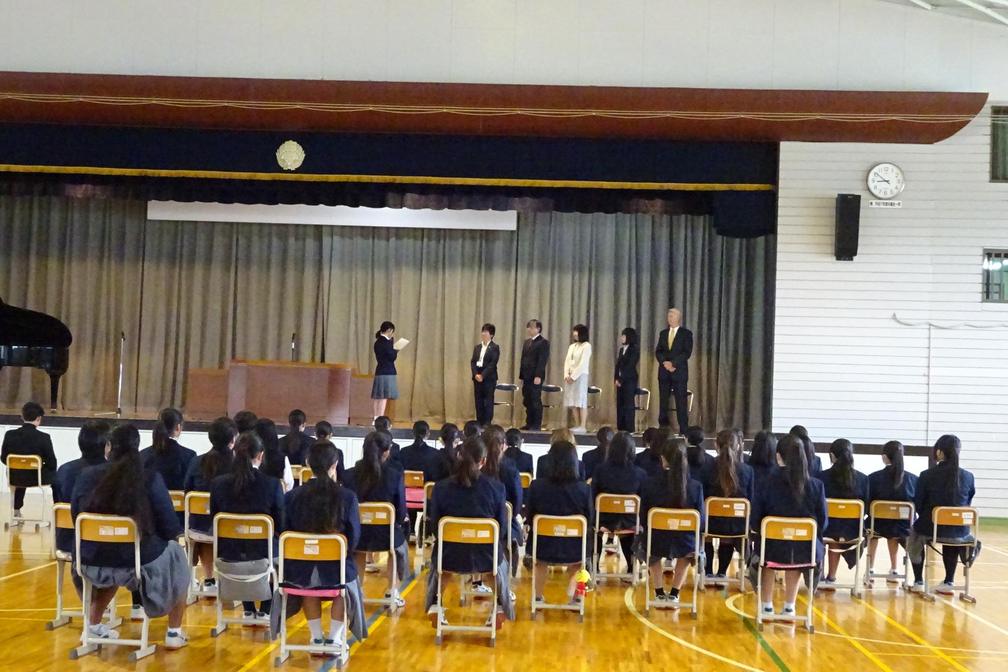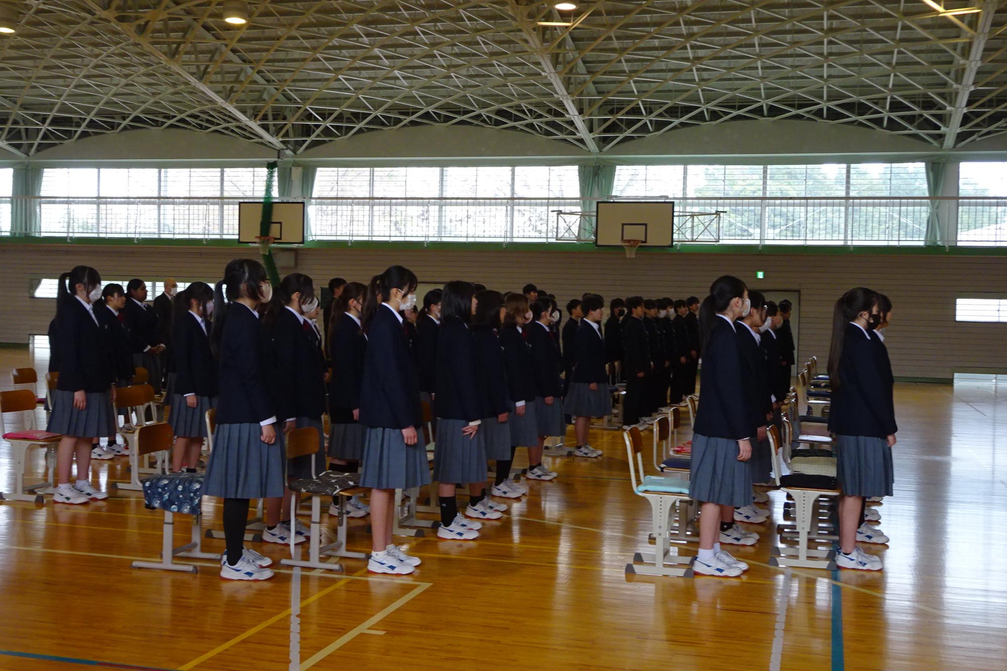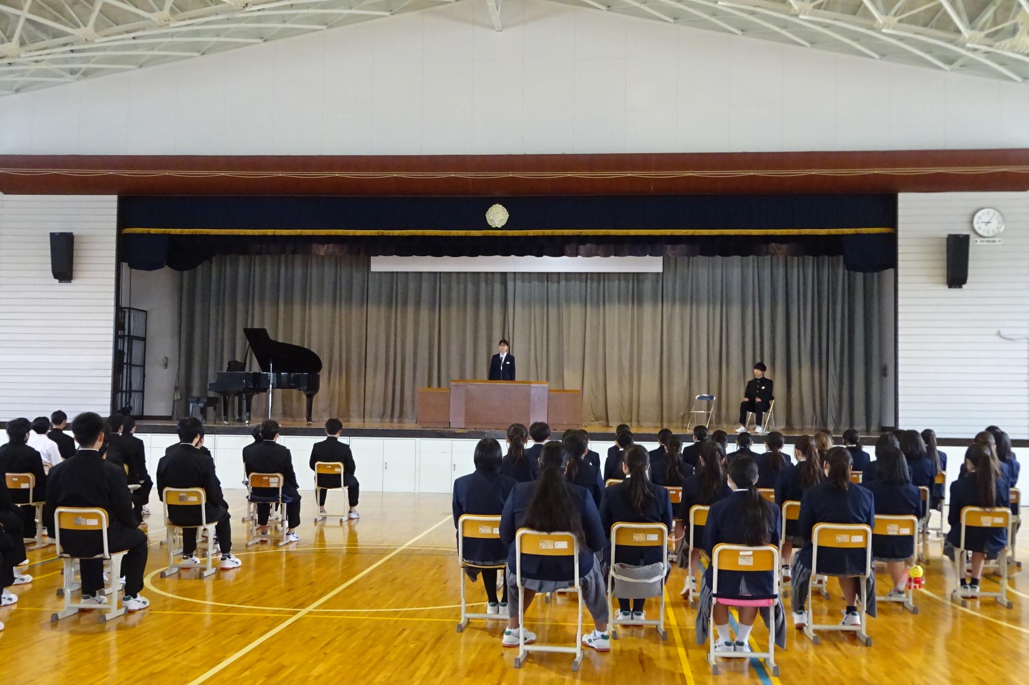 白井中らしい温かい雰囲気と合唱で、今年度着任なさった先生方をお迎えできました。その後の、始業式では、2・3年生が原稿なしで新年度の抱負をスピーチし、堂々としていてとても立派でした。また、校長から、今年度の学校教育目標について説明があり、心機一転。全体の気持ちの高まりが、体育館全体に広まりました。