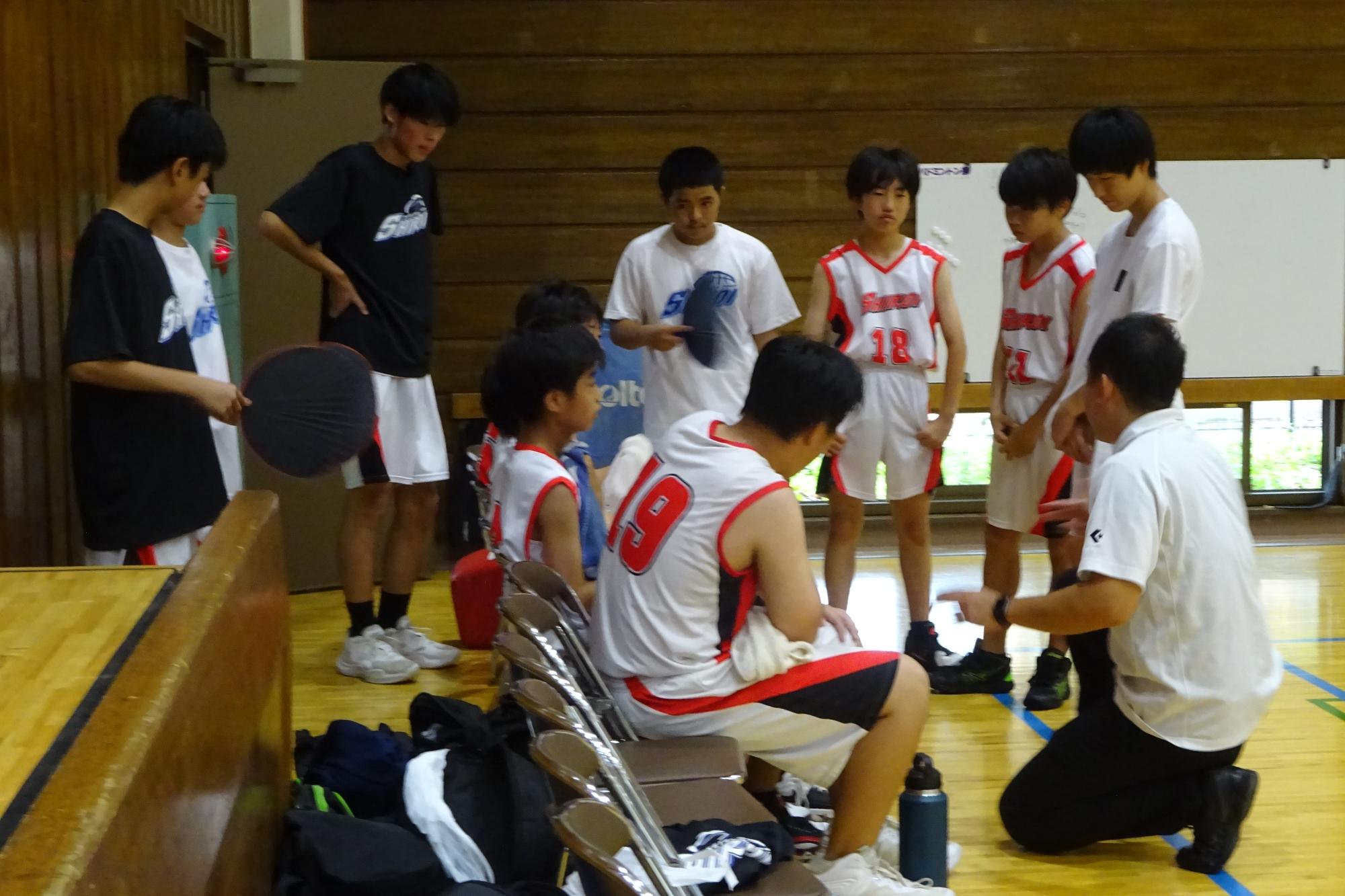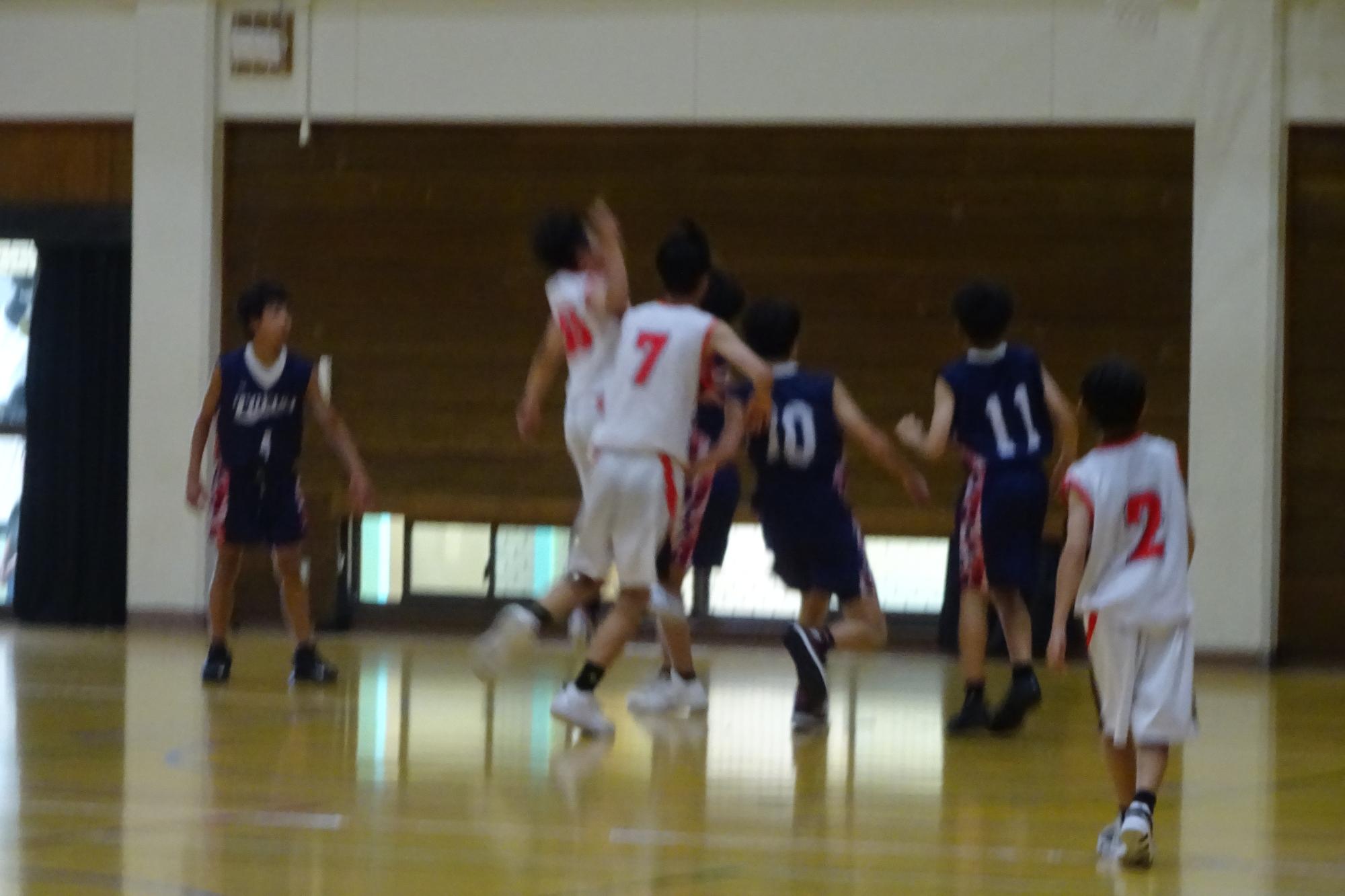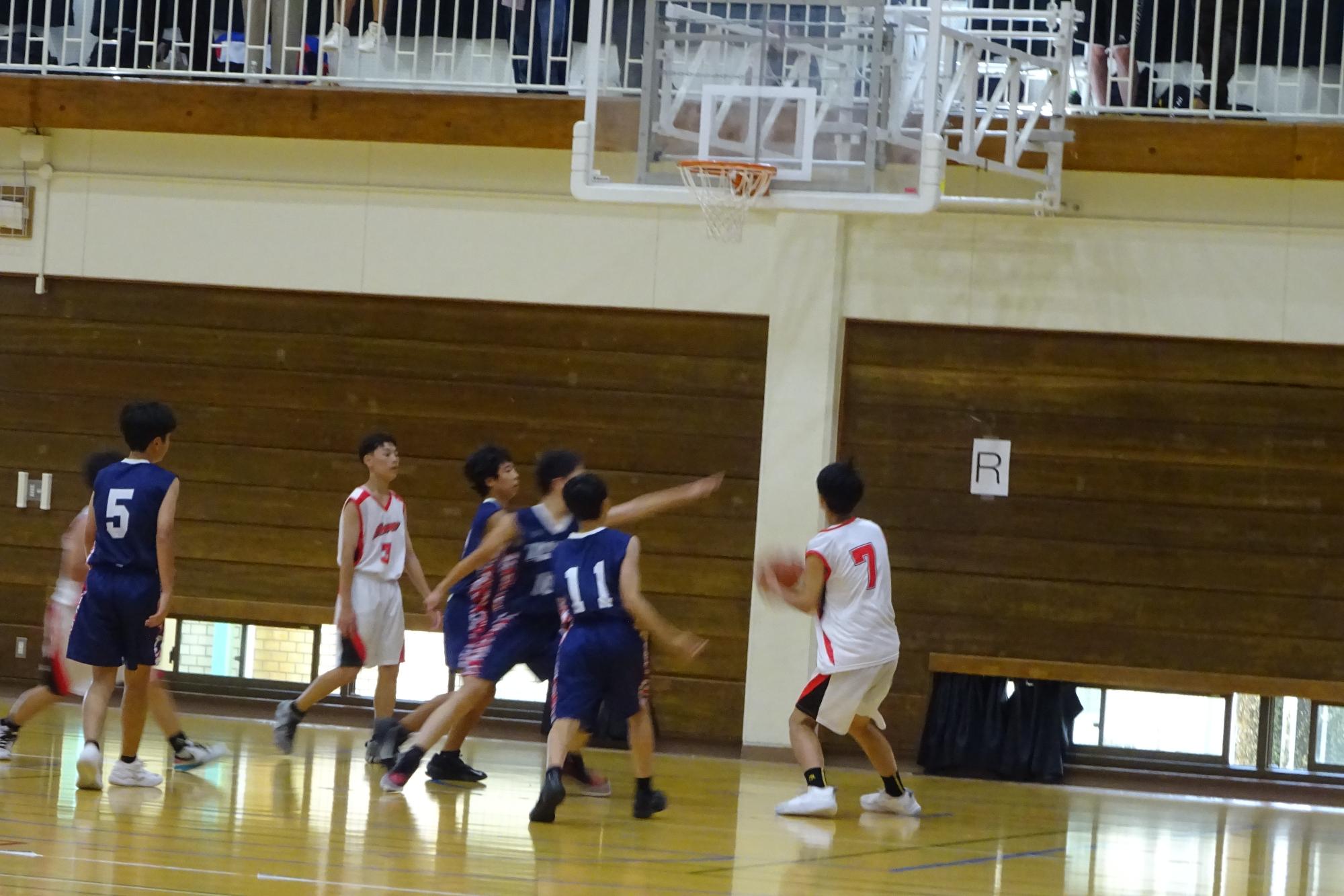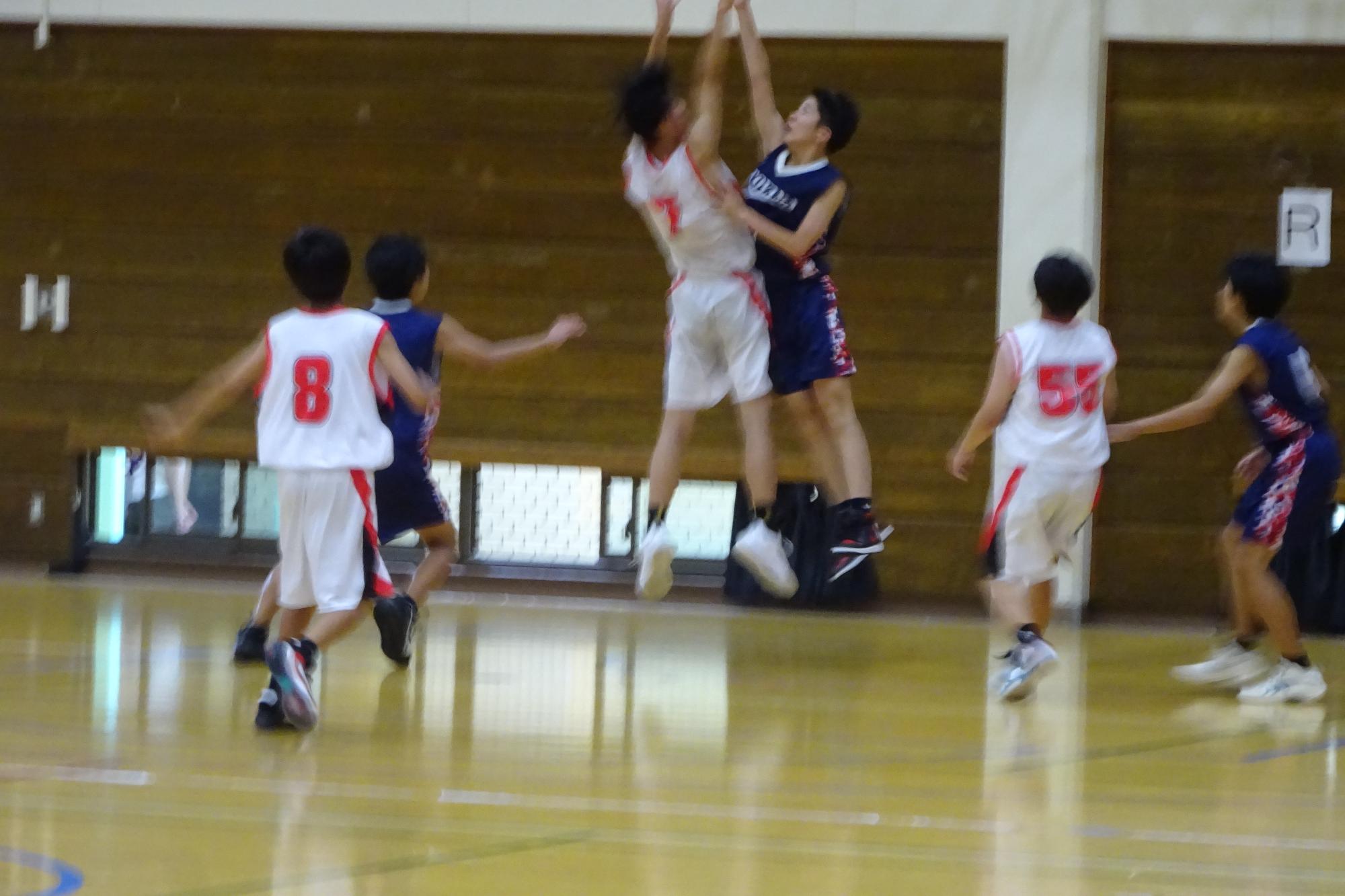 対戦相手は、西の原中学校でした。前半は互角の戦いで、春大のリベンジにと燃えるバスケット部でした。