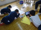 避難訓練前、訓練後にはタブレットでワークシートに取り組みました。