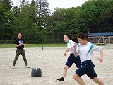 グラウンドでは、50m走とハンドボール投げが実施されました。