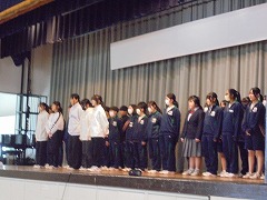 1・2年生はそんな3年生の先輩方へ感謝の気持ちを込めて予餞会練習に励んでいました。寒い体育館の中に、素敵な歌声が響き渡っていました。先生方は見守るだけで、練習を進めているのは2年生の代表の生徒達でした。本番、3年生が笑い、泣いて、感動してくれる様子が目に浮かぶような練習風景でした。