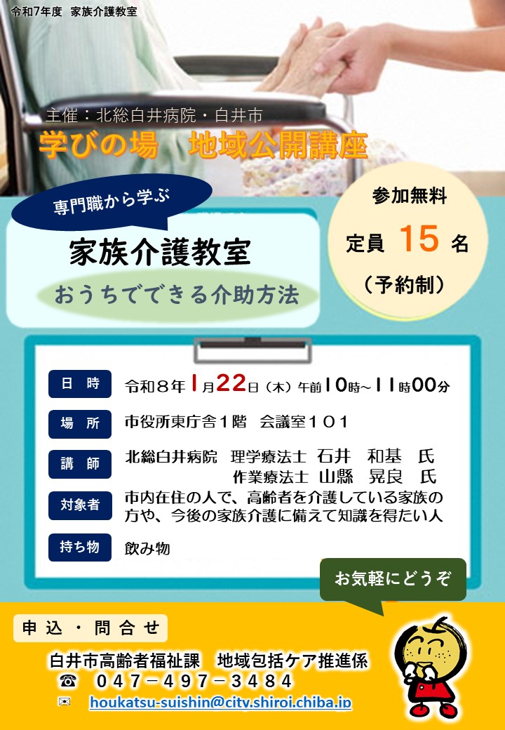 介護に関する知識や技術などについて学ぶ家族介護教室を開催します。
