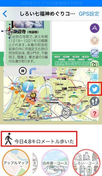 しろい散策マップアプリをインストールすると、位置情報の利用許可が求められます。